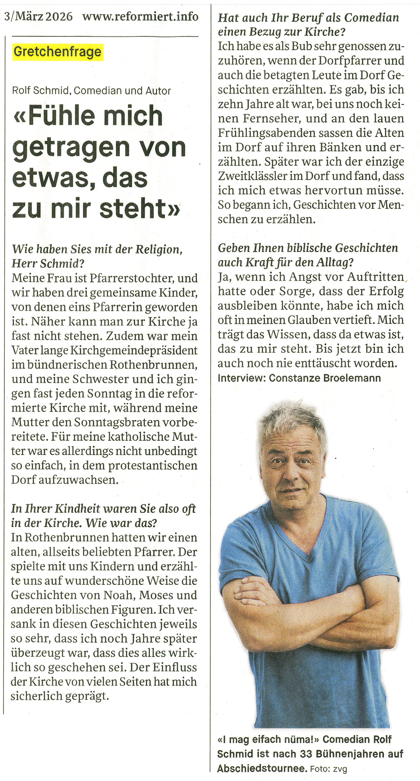 Rolf Schmid beendet seine erfolgreiche Bühnenkarriere. Oder wir er es selber formuliert: «I könnt natürli schu nomol 33 Johr uf dr Bühni stoh, aber i muan eu ganz ehrlich säga: I mag eifach nid!»